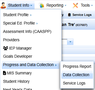 Go to /Student Info/Progress and Data Collection/Data Collection