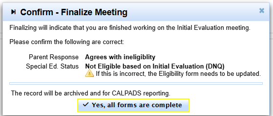 Click Finalize Meeting