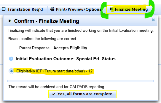 Getting family to sign off on initial provision of eligibility and equitable services.