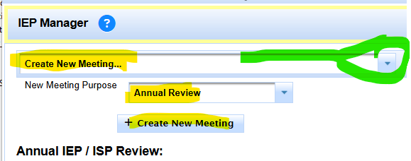 Create Annual Review IEP manager event to develop offer of FAPE.