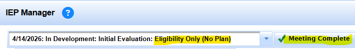 Student record should already be inactive with non participation inactive reason. Make record pending. Create meeting. Assuming parents don't accept plan to begin on IEP or ISP. MEET only will be reported.