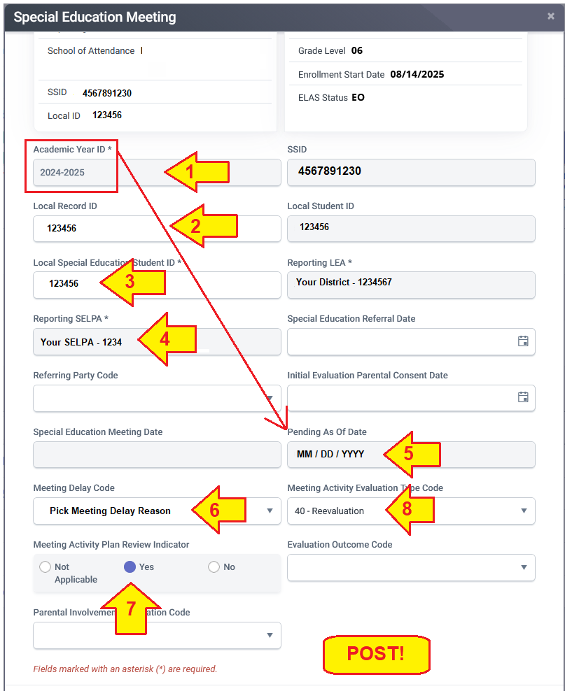 - Fill in Your SELPA from menu