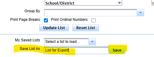 Once the list has been created, it can be saved by typing in a name next to Save List As and clicking on Save. Each user may create and save as many lists as desired.