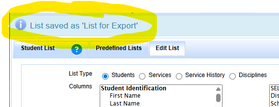 Once you have saved a list, that list can now be used to 'save an export' for later, like running monthly exports.