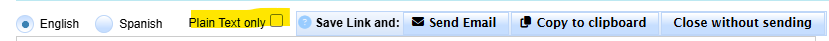 Before sending, click “Spanish” so the email link opens the Spanish version of the form when the recipient clicks it.