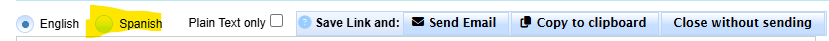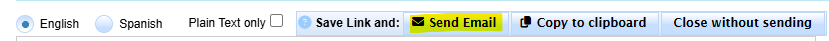 Before sending, click “Spanish” so the email link opens the Spanish version of the form when the recipient clicks it.