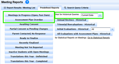 - Meeting Reports: Meeting Reports have been separated into three tabs. The list of students on the first tab, then predefined reports, and then queries.