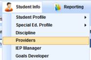 Click on the Student Info menu and choose ‘Providers’ to go to the area to assign access.