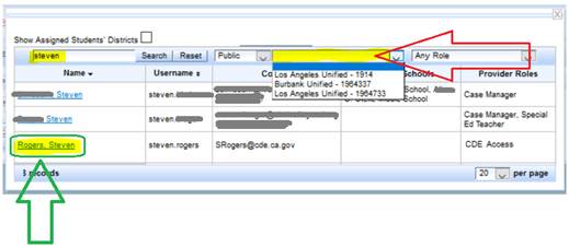 Your SELPA has already created a SIRAS account to be used for giving a CDE representative access to student records within your LEA. Check with SELPA to confirm this person’s name, as that is what you will be searching for when assigning student records to be reviewed by CDE.