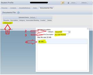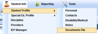 Click on Student info and select /Student Info/Student Profile/Documents file: