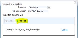 Then verify the correct document was selected and click the ‘Upload’ button.
