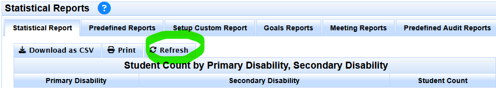 Or if you have returned to the Statistical Report Page, then click the 'Refresh button' to re-run the report on the results of the Alternate ELPAC query.