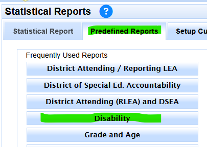 - Select the Disability button report on the left hand side