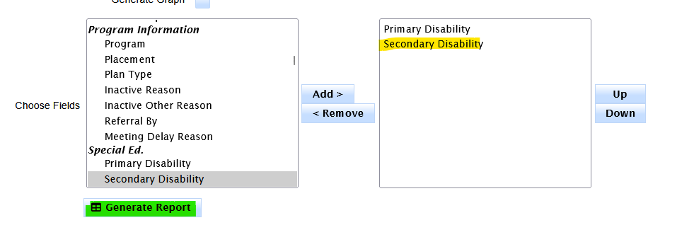 - Add secondary disability to the report column as a second value on the right