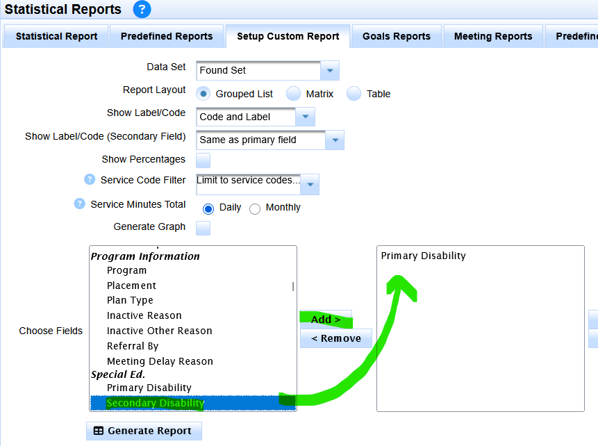 Then just return to set up custom report under statistical reports