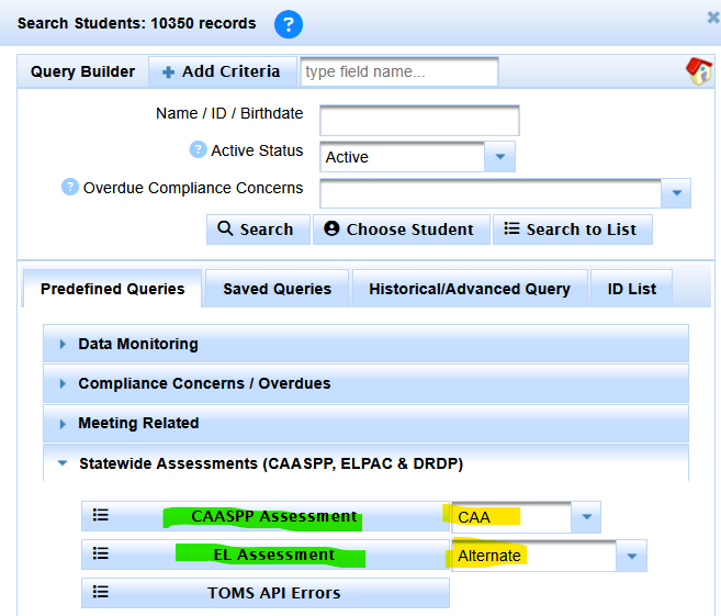 SELPA Admins can use predefined reports to come up with the numbers of students with Alternate Assessments.